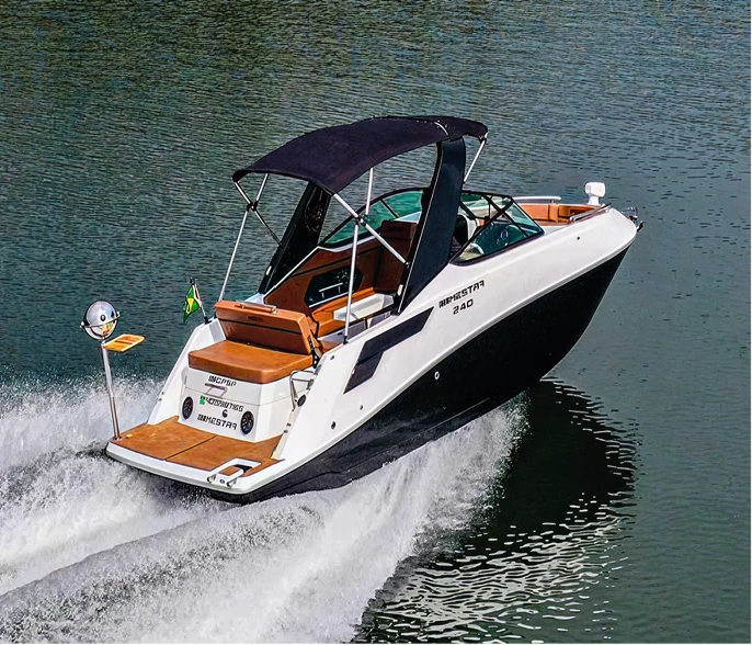 Compacta com alma de lancha grande: cabine funcional, espaço inteligente e navegação segura.